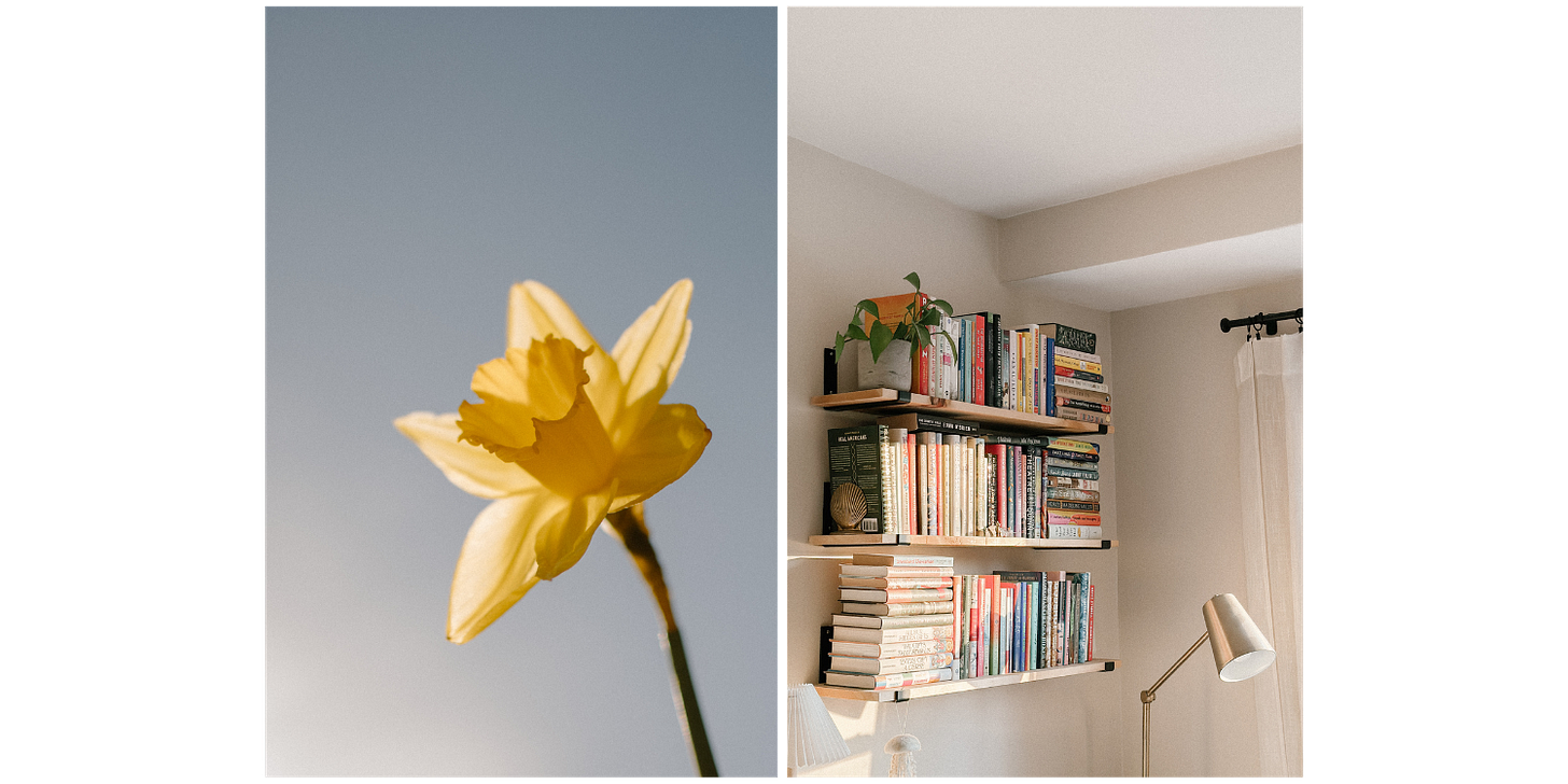 I’m keeping our dining room table adorned with fresh tulips and daffodils each week, swapping soups for the occasional salad, and I’m breaking out some of my lighter sweaters (though keeping the heavy ones in reach, I’m not totally naive).